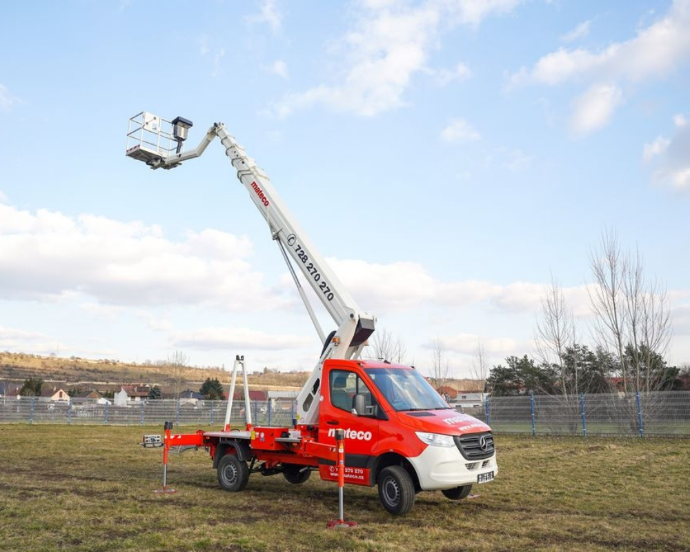 Belgian transport and handling company MB Groupe has added a 70-metre Ruthmann T700 HF truck-mounted platform to its fleet. The platform, mounted on an MAN chassis, features a five-section main boom, a three-section upper boom, and an articulating jib, providing a maximum outreach of 41 metres or up to 35 metres at an up & over height of 47 metres. The platform supports a maximum capacity of 600 kg.